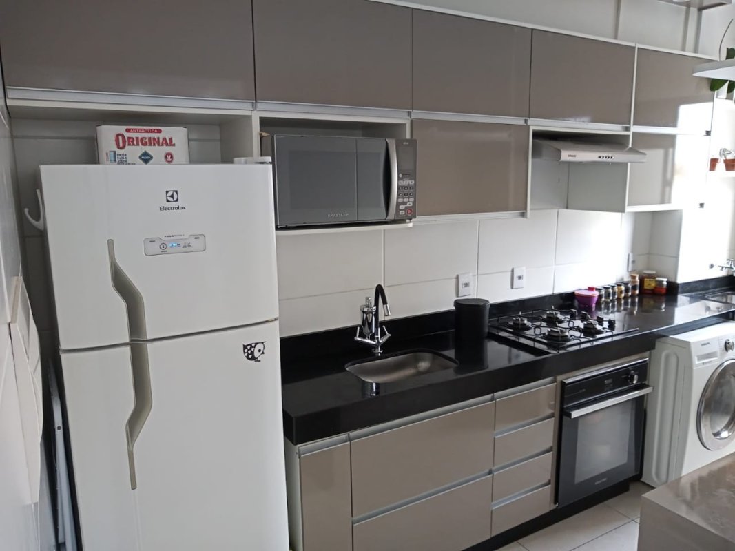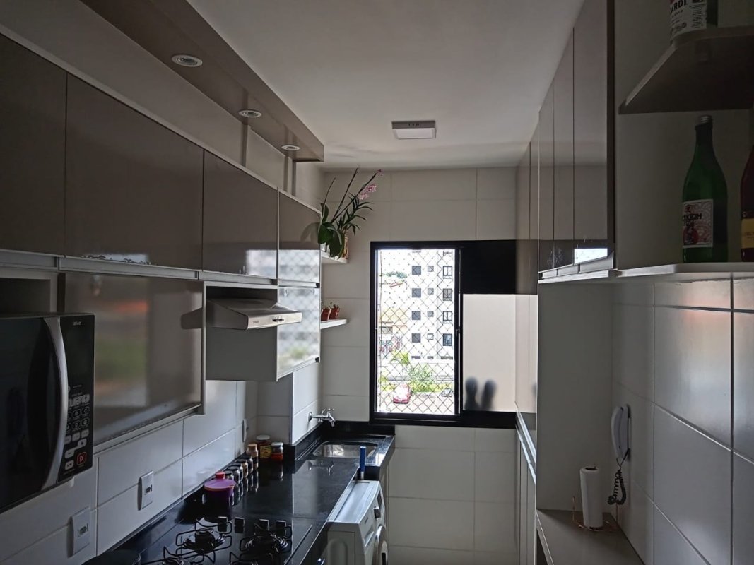 Apartamento 02 dormitórios, sala com piso laminado , cozinha e banheiro, com armários e porcelanato. Portaria 24 horas, piscina adulto e infantil, playground, quadra poliesportiva, mini mercado, salão de festas e academia.